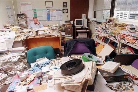 During those short periods when I obsessively kept my office spotless, I would make a conscious effort not to start new piles, to distribute periodicals on a timely basis (not three months later) and keep paper OFF the mirror-like surface of my polished desk.