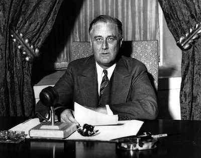 FDR tried to calm a jittery nation in his first inaugural address and subsequent fireside chats. Image from kirbymuseum.org.
