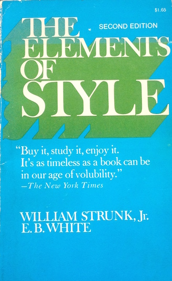 My 1972 edition of Strunk & White’s “The Elements of Style.” The blurb on the cover still rings true.